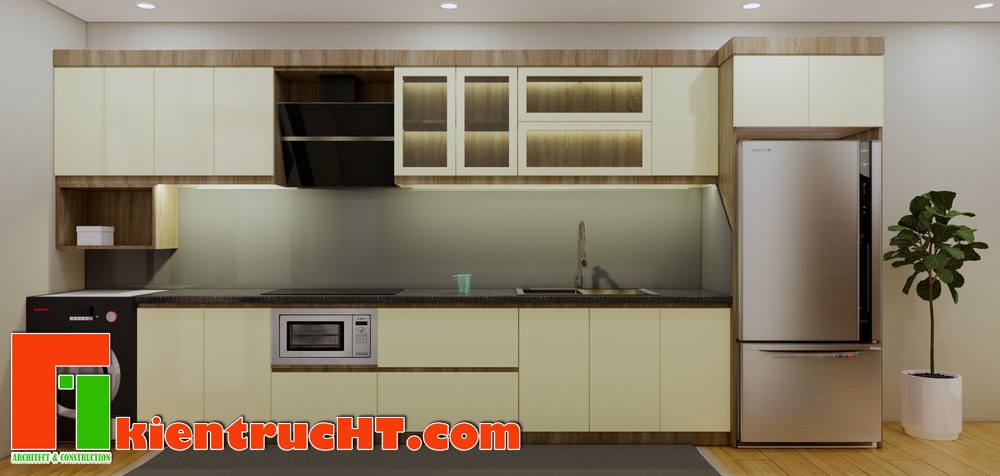 Phòng bếp thiết kế đơn giản, hiện đại và tối ưu công năng.