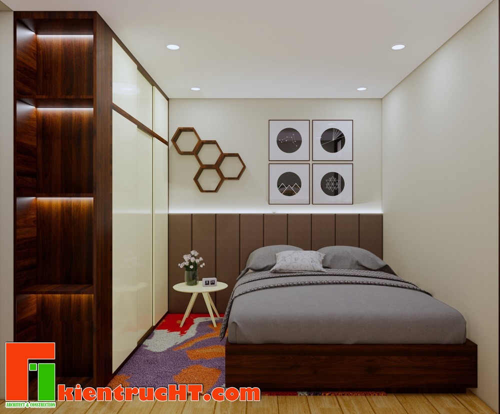 Với diện tích nhỏ, tối giản vật dụng là cách để có không gian thoáng, nhưng vẫn đủ công năng của 1 phòng ngủ.